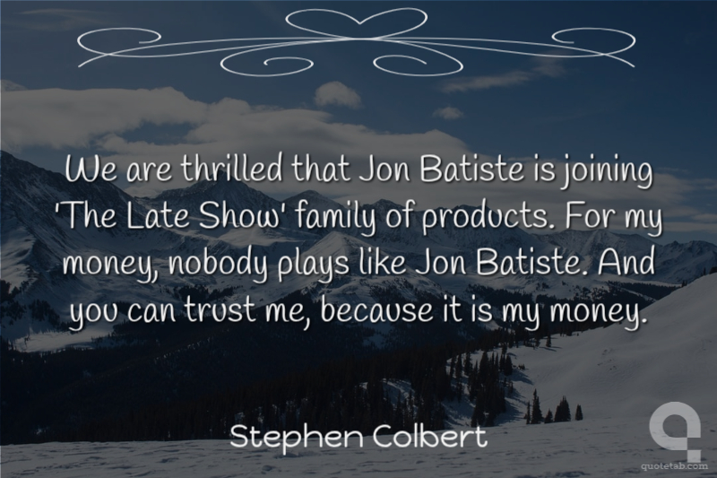 We are thrilled that Jon Batiste is joining 'The Late Show' family of products. For my money, nobody plays like Jon Batiste. And you can trust me, because it is my money.