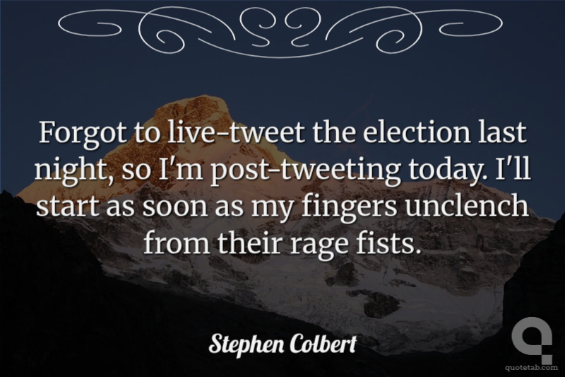 Forgot to live-tweet the election last night, so I'm post-tweeting today. I'll start as soon as my fingers unclench from their rage fists.