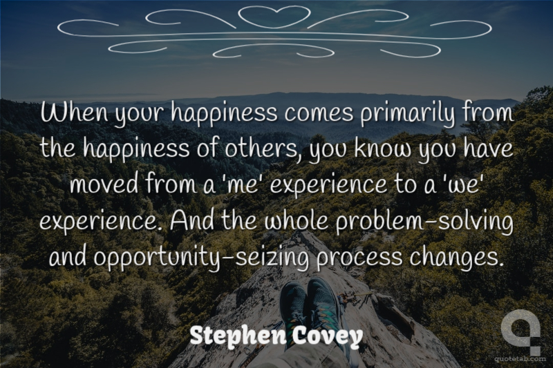 When your happiness comes primarily from the happiness of others, you know you have moved from a 'me' experience to a 'we' experience. And the whole problem-solving and opportunity-seizing process changes.