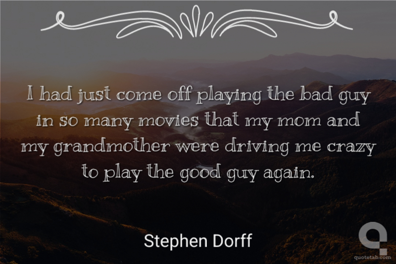 I had just come off playing the bad guy in so many movies that my mom and my grandmother were driving me crazy to play the good guy again.