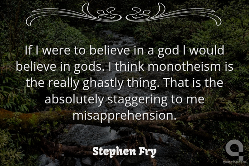 If I were to believe in a god l would believe in gods. I think monotheism is the really ghastly thing. That is the absolutely staggering to me misapprehension.