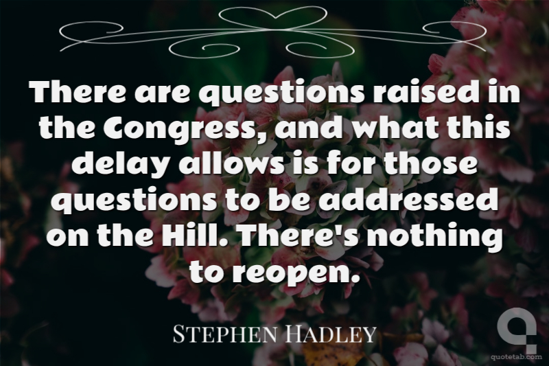There are questions raised in the Congress, and what this delay allows is for those questions to be addressed on the Hill. There's nothing to reopen.