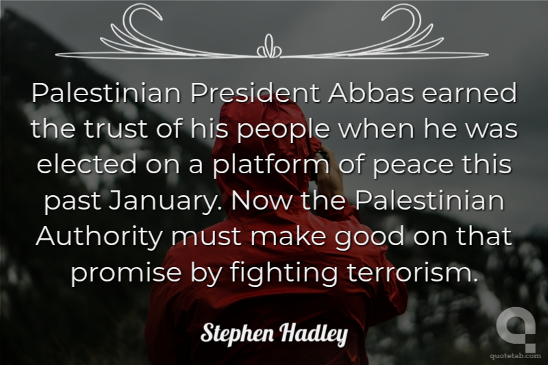 Palestinian President Abbas earned the trust of his people when he was elected on a platform of peace this past January. Now the Palestinian Authority must make good on that promise by fighting terrorism.