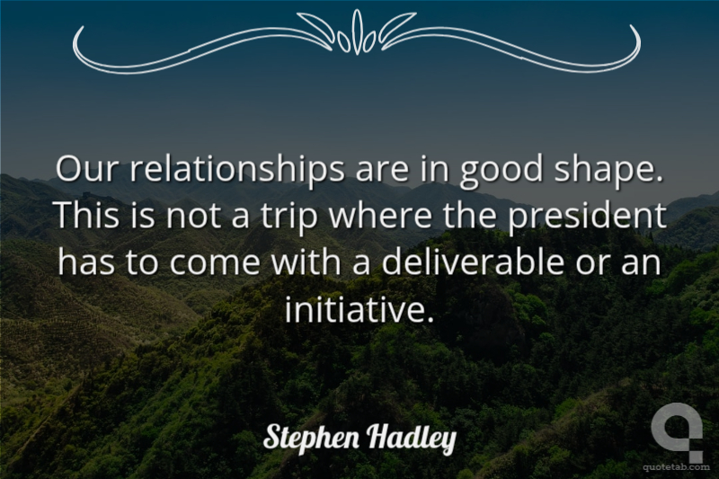 Our relationships are in good shape. This is not a trip where the president has to come with a deliverable or an initiative.