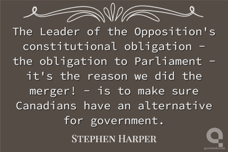 The Leader of the Opposition's constitutional obligation - the obligation to Parliament - it's the reason we did the merger! - is to make sure Canadians have an alternative for government.
