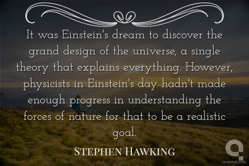It was Einstein's dream to discover the grand design of the universe, a single theory that explains everything. However, physicists in Einstein's day hadn't made enough progress in understanding the forces of nature for that to be a realistic goal.