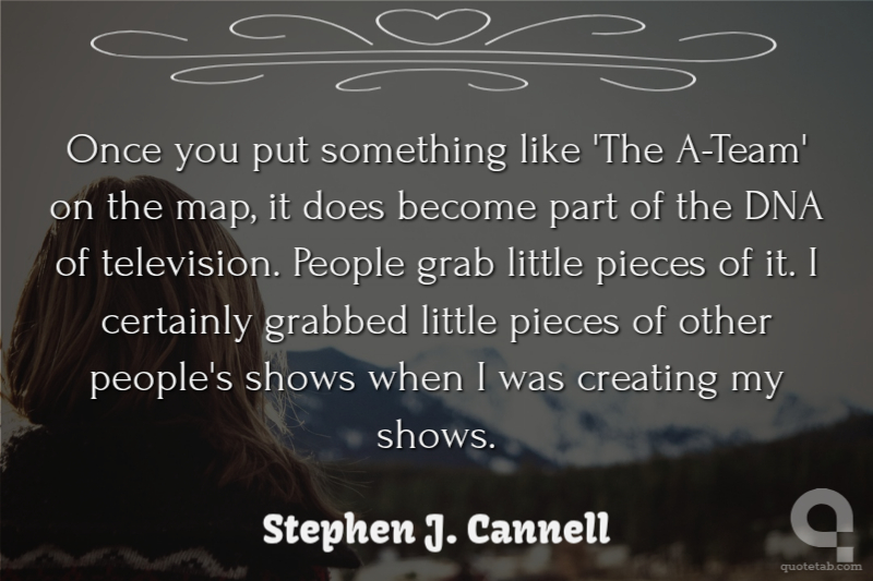 Once you put something like 'The A-Team' on the map, it does become part of the DNA of television. People grab little pieces of it. I certainly grabbed little pieces of other people's shows when I was creating my shows.