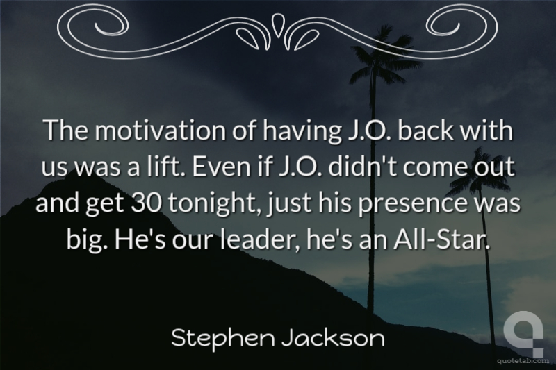 The motivation of having J.O. back with us was a lift. Even if J.O. didn't come out and get 30 tonight, just his presence was big. He's our leader, he's an All-Star.