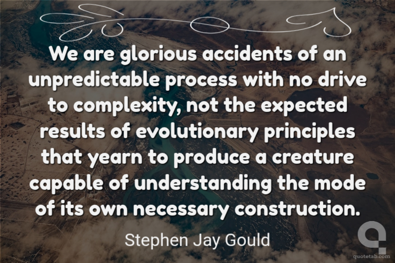 We are glorious accidents of an unpredictable process with no drive to complexity, not the expected results of evolutionary principles that yearn to produce a creature capable of understanding the mode of its own necessary construction.