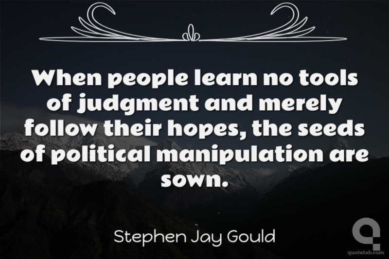 When people learn no tools of judgment and merely follow their hopes, the seeds of political manipulation are sown.