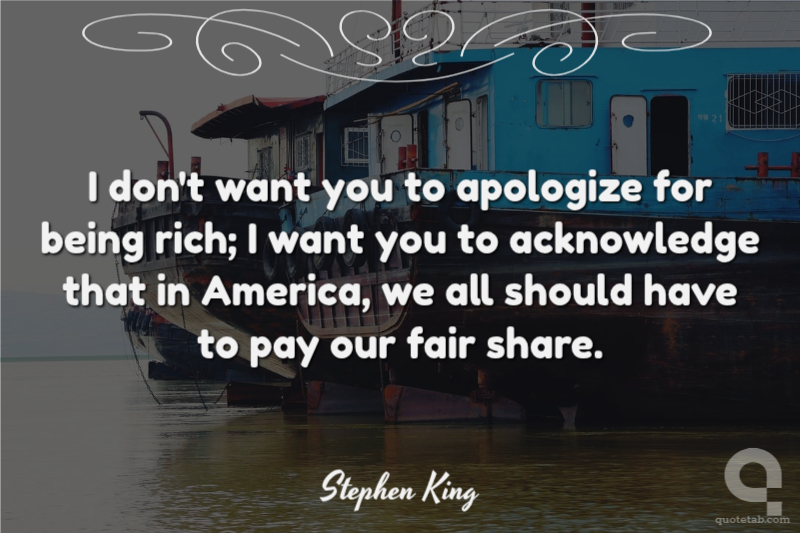 I don't want you to apologize for being rich; I want you to acknowledge that in America, we all should have to pay our fair share.