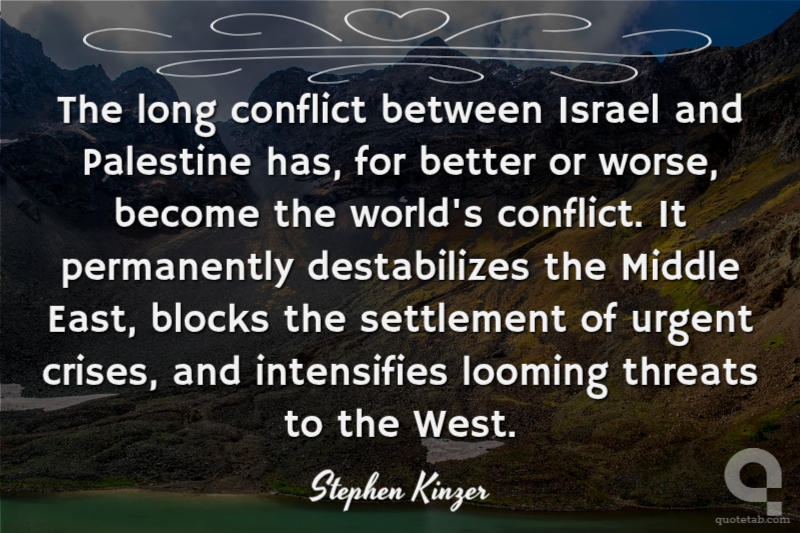 The long conflict between Israel and Palestine has, for better or worse, become the world's conflict. It permanently destabilizes the Middle East, blocks the settlement of urgent crises, and intensifies looming threats to the West.