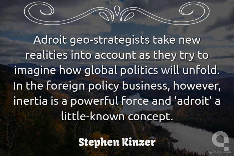 Adroit geo-strategists take new realities into account as they try to imagine how global politics will unfold. In the foreign policy business, however, inertia is a powerful force and 'adroit' a little-known concept.