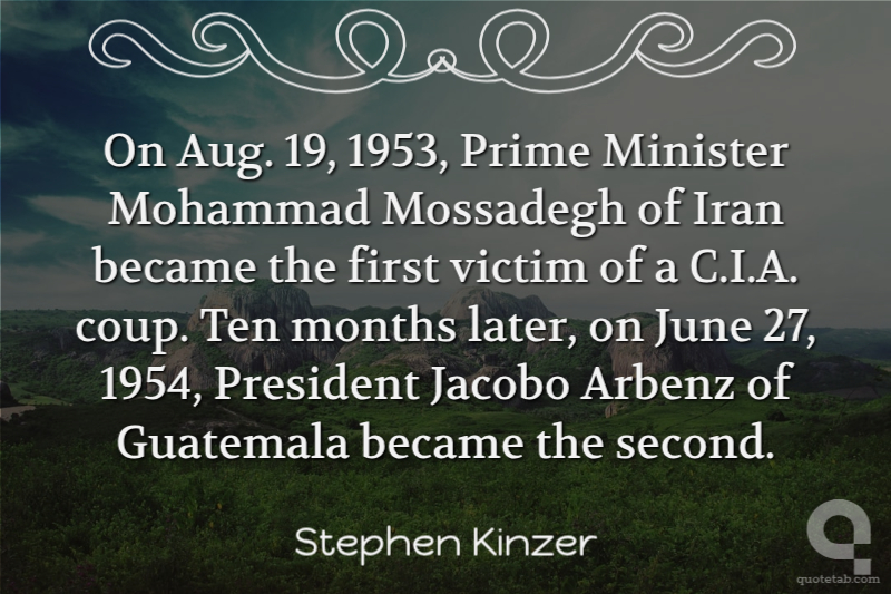 On Aug. 19, 1953, Prime Minister Mohammad Mossadegh of Iran became the first victim of a C.I.A. coup. Ten months later, on June 27, 1954, President Jacobo Arbenz of Guatemala became the second.