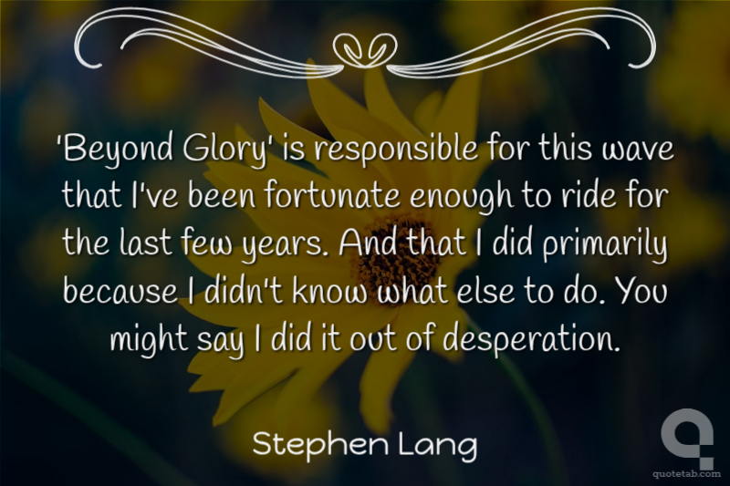 'Beyond Glory' is responsible for this wave that I've been fortunate enough to ride for the last few years. And that I did primarily because I didn't know what else to do. You might say I did it out of desperation.