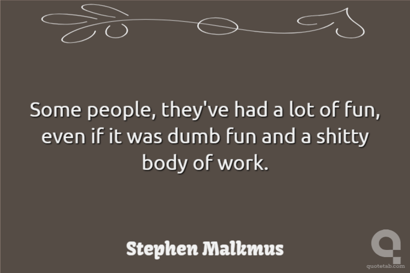 Some people, they've had a lot of fun, even if it was dumb fun and a shitty body of work.