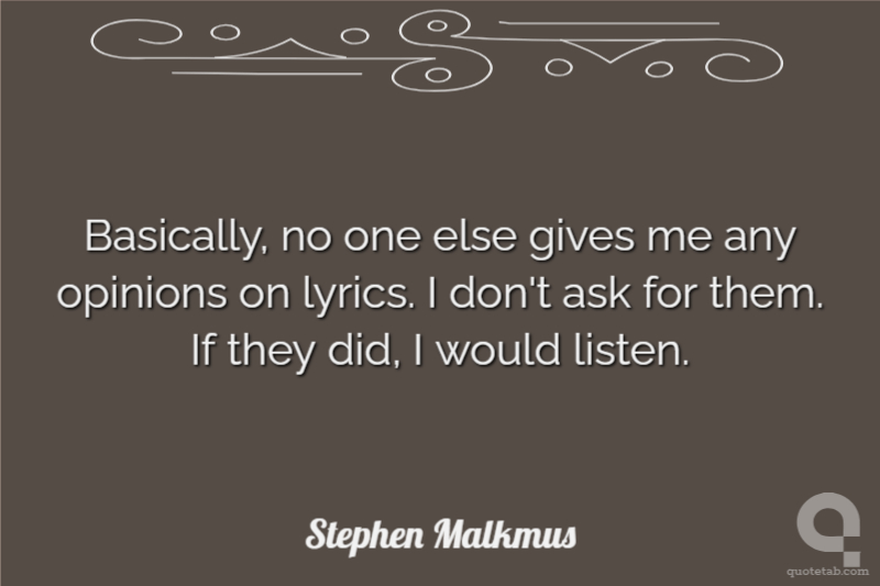 Basically, no one else gives me any opinions on lyrics. I don't ask for them. If they did, I would listen.