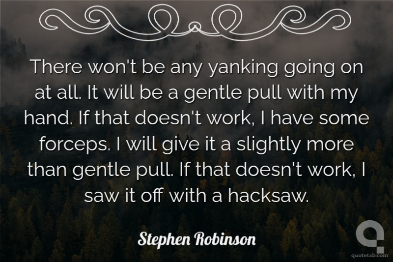There won't be any yanking going on at all. It will be a gentle pull with my hand. If that doesn't work, I have some forceps. I will give it a slightly more than gentle pull. If that doesn't work, I saw it off with a hacksaw.