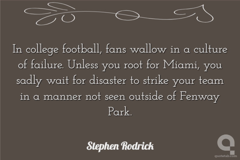 In college football, fans wallow in a culture of failure. Unless you root for Miami, you sadly wait for disaster to strike your team in a manner not seen outside of Fenway Park.