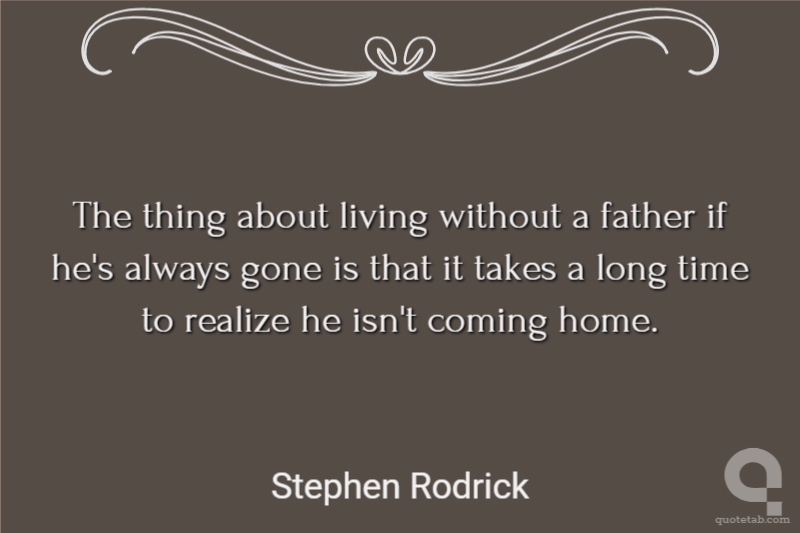 The thing about living without a father if he's always gone is that it takes a long time to realize he isn't coming home.