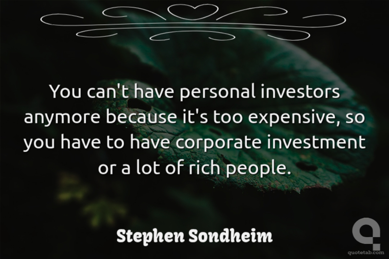 You can't have personal investors anymore because it's too expensive, so you have to have corporate investment or a lot of rich people.