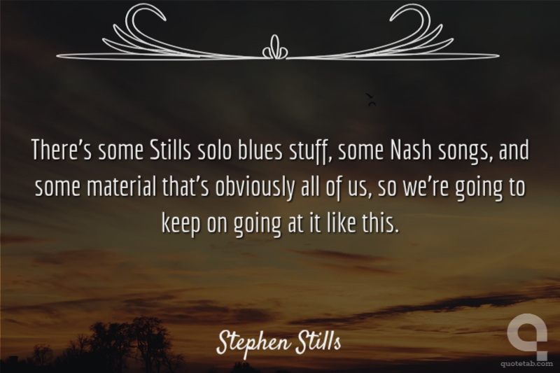 There's some Stills solo blues stuff, some Nash songs, and some material that's obviously all of us, so we're going to keep on going at it like this.