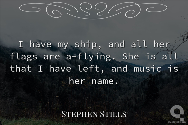 I have my ship, and all her flags are a-flying. She is all that I have left, and music is her name.