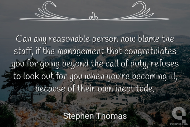 Can any reasonable person now blame the staff, if the management that congratulates you for going beyond the call of duty, refuses to look out for you when you're becoming ill, because of their own ineptitude.