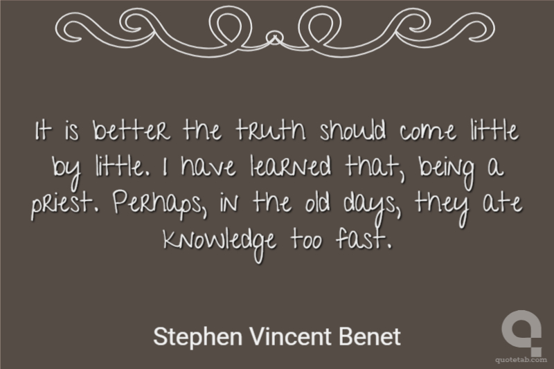 It is better the truth should come little by little. I have learned that, being a priest. Perhaps, in the old days, they ate knowledge too fast.