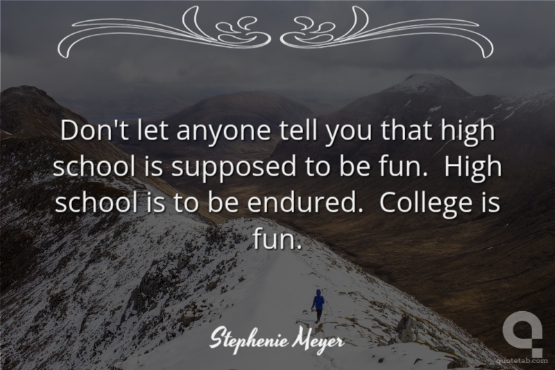 Don't let anyone tell you that high school is supposed to be fun. High school is to be endured. College is fun.