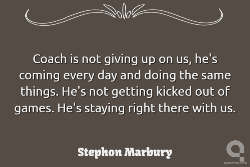 Coach is not giving up on us, he's coming every day and doing the same things. He's not getting kicked out of games. He's staying right there with us.