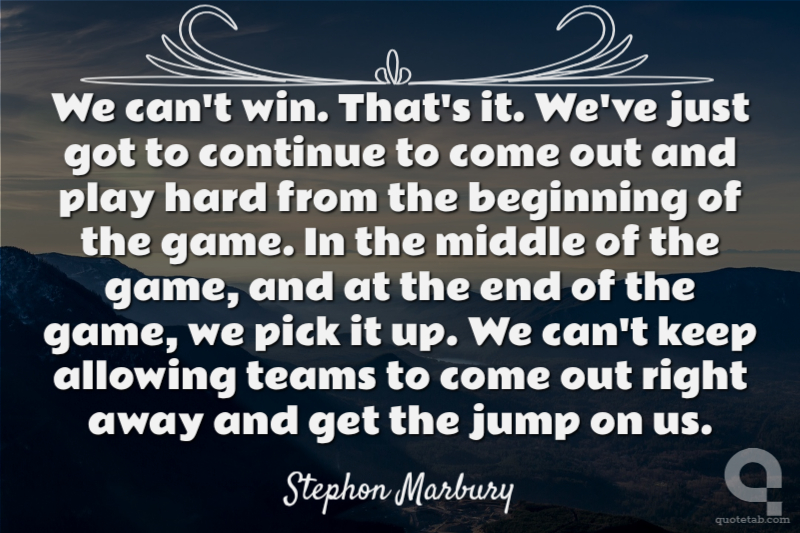We can't win. That's it. We've just got to continue to come out and play hard from the beginning of the game. In the middle of the game, and at the end of the game, we pick it up. We can't keep allowing teams to come out right away and get the jump on us.