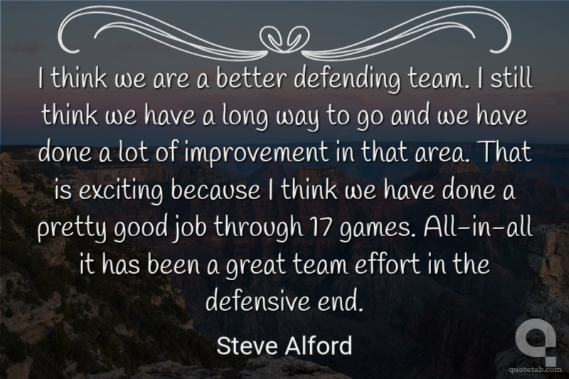 I think we are a better defending team. I still think we have a long way to go and we have done a lot of improvement in that area. That is exciting because I think we have done a pretty good job through 17 games. All-in-all it has been a great team effort in the defensive end.