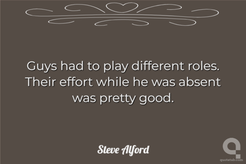 Guys had to play different roles. Their effort while he was absent was pretty good.