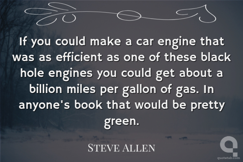 If you could make a car engine that was as efficient as one of these black hole engines you could get about a billion miles per gallon of gas. In anyone's book that would be pretty green.