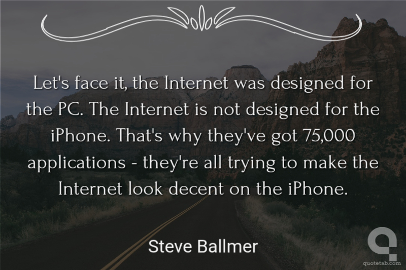Let's face it, the Internet was designed for the PC. The Internet is not designed for the iPhone. That's why they've got 75,000 applications - they're all trying to make the Internet look decent on the iPhone.