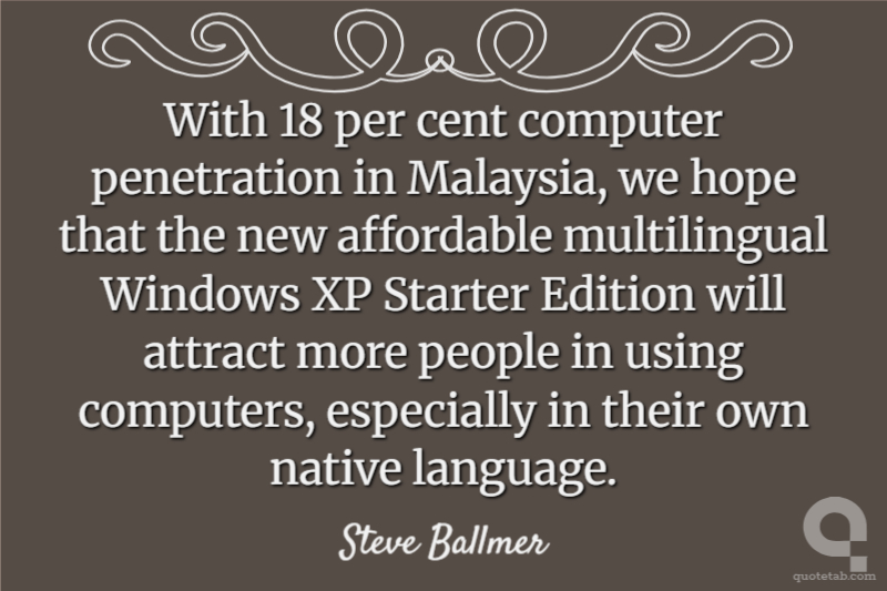 With 18 per cent computer penetration in Malaysia, we hope that the new affordable multilingual Windows XP Starter Edition will attract more people in using computers, especially in their own native language.