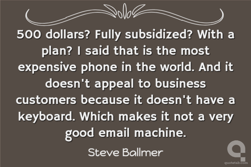 500 dollars? Fully subsidized? With a plan? I said that is the most expensive phone in the world. And it doesn't appeal to business customers because it doesn't have a keyboard. Which makes it not a very good email machine.