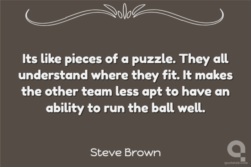 Its like pieces of a puzzle. They all understand where they fit. It makes the other team less apt to have an ability to run the ball well.