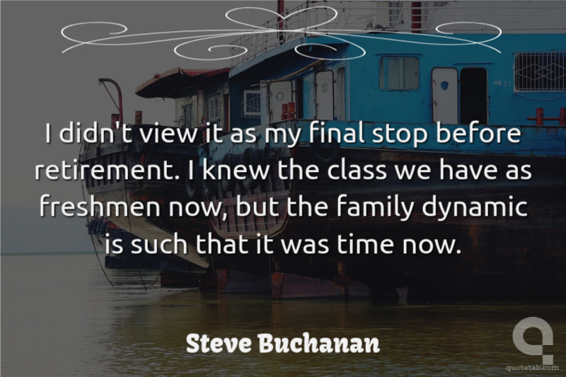 I didn't view it as my final stop before retirement. I knew the class we have as freshmen now, but the family dynamic is such that it was time now.