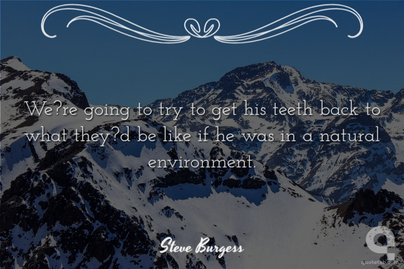 We?re going to try to get his teeth back to what they?d be like if he was in a natural environment.