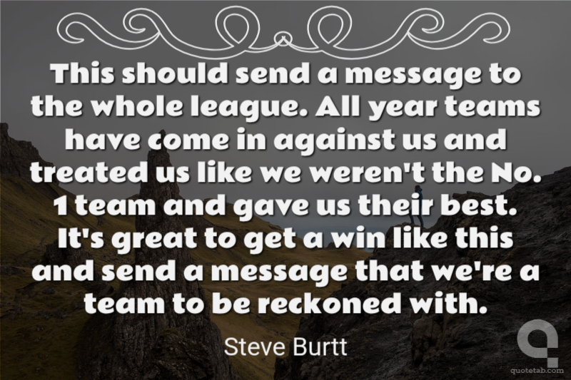This should send a message to the whole league. All year teams have come in against us and treated us like we weren't the No. 1 team and gave us their best. It's great to get a win like this and send a message that we're a team to be reckoned with.