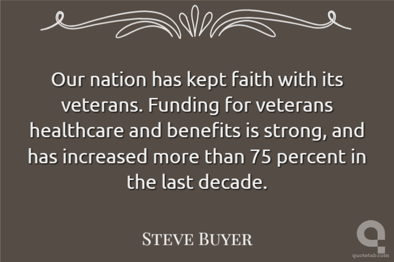 Our nation has kept faith with its veterans. Funding for veterans healthcare and benefits is strong, and has increased more than 75 percent in the last decade.