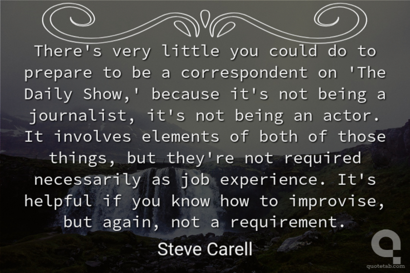 There's very little you could do to prepare to be a correspondent on 'The Daily Show,' because it's not being a journalist, it's not being an actor. It involves elements of both of those things, but they're not required necessarily as job experience. It's helpful if you know how to improvise, but again, not a requirement.