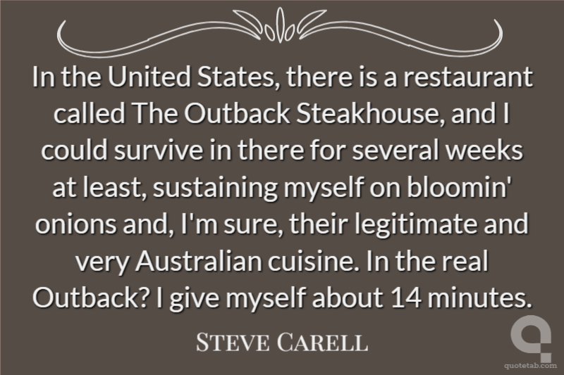 In the United States, there is a restaurant called The Outback Steakhouse, and I could survive in there for several weeks at least, sustaining myself on bloomin' onions and, I'm sure, their legitimate and very Australian cuisine. In the real Outback? I give myself about 14 minutes.