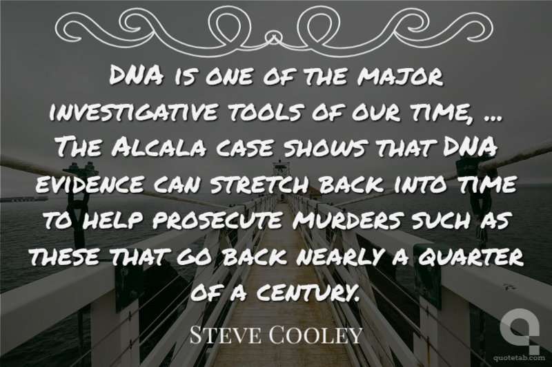 DNA is one of the major investigative tools of our time, ... The Alcala case shows that DNA evidence can stretch back into time to help prosecute murders such as these that go back nearly a quarter of a century.