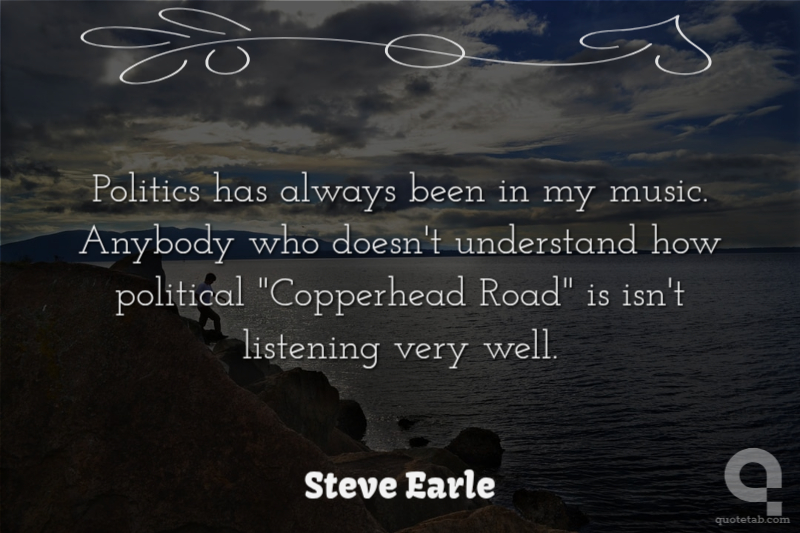 Politics has always been in my music. Anybody who doesn't understand how political "Copperhead Road" is isn't listening very well.