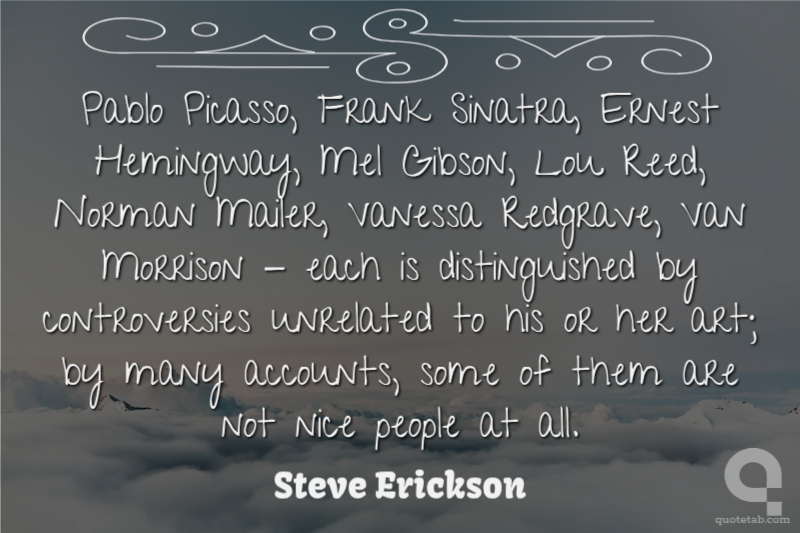 Pablo Picasso, Frank Sinatra, Ernest Hemingway, Mel Gibson, Lou Reed, Norman Mailer, Vanessa Redgrave, Van Morrison - each is distinguished by controversies unrelated to his or her art; by many accounts, some of them are not nice people at all.