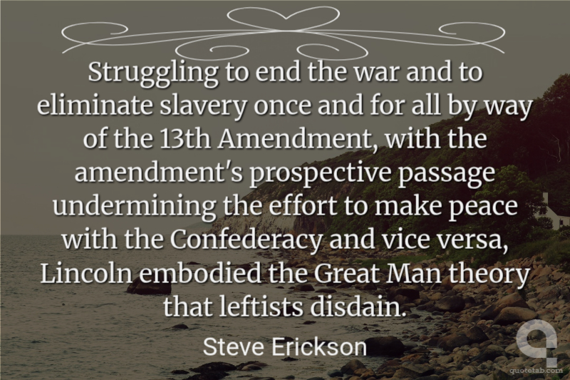 Struggling to end the war and to eliminate slavery once and for all by way of the 13th Amendment, with the amendment's prospective passage undermining the effort to make peace with the Confederacy and vice versa, Lincoln embodied the Great Man theory that leftists disdain.