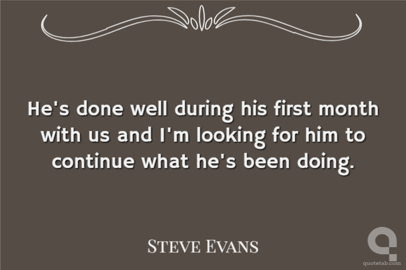 He's done well during his first month with us and I'm looking for him to continue what he's been doing.